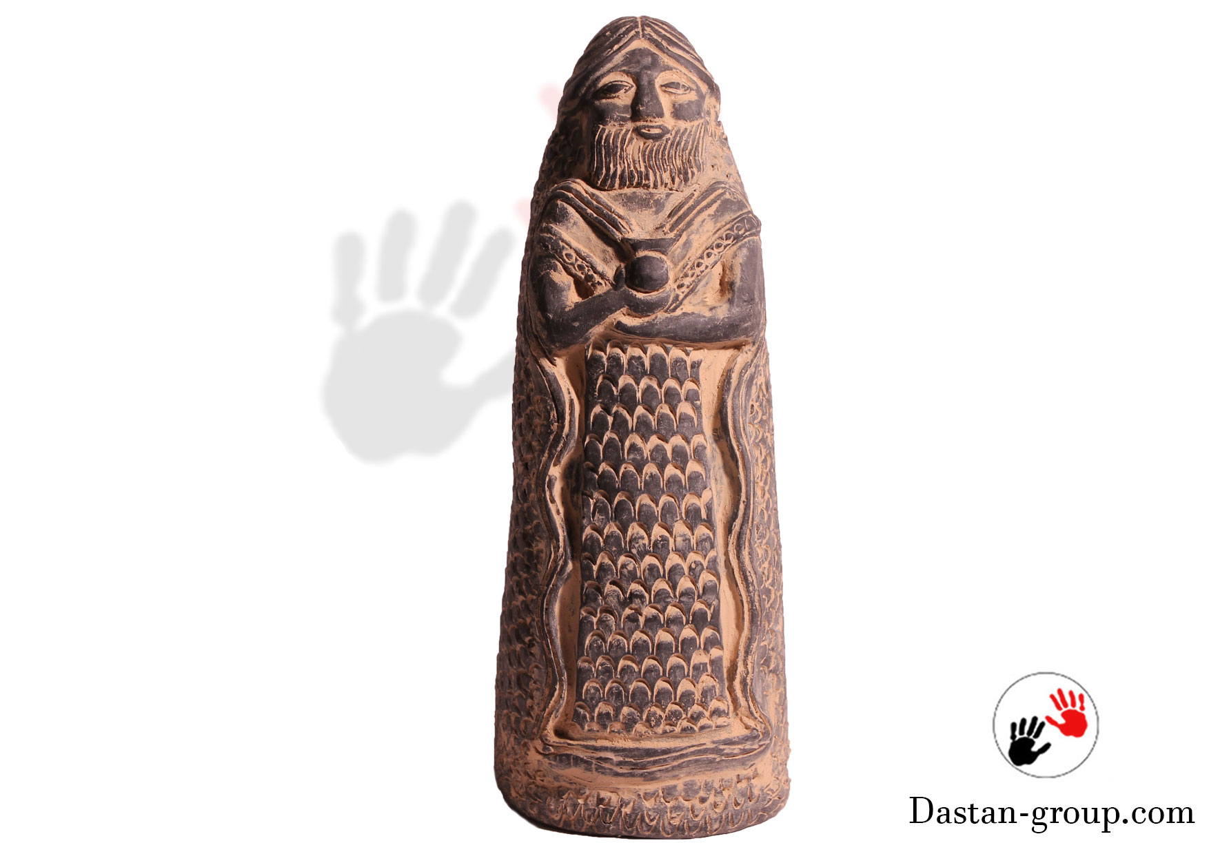 هنرمندان این مجسمه را با قامتی استوار، ردا یا جامهای بلند و تزئینات فلسمانند خلق کردهاند. در تمدنهای ایلامی و بینالنهرین، چنین پوششهایی قدرت، مقام و ارتباط با خدایان را نشان میداد. این طراحی، الهامگرفته از سنتهای کهن، حس اقتدار و احترام را مستقیم به بیننده منتقل میکند.