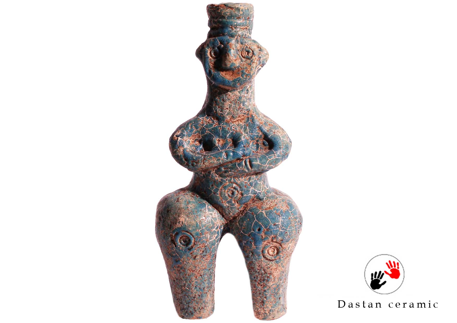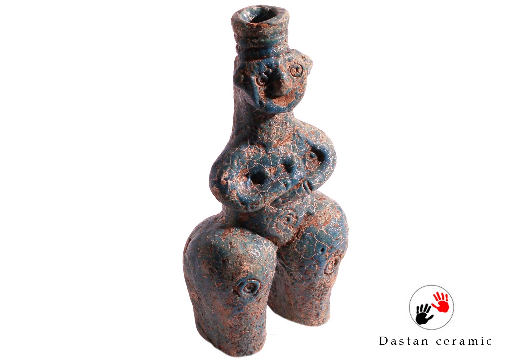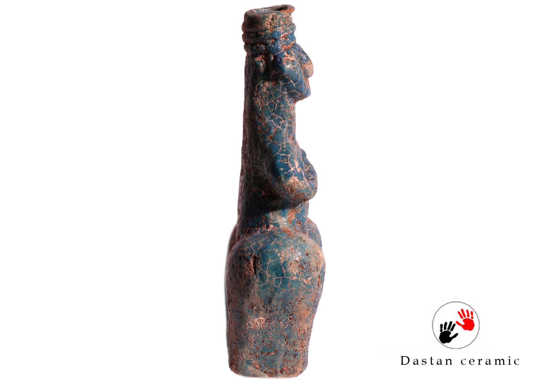 گروه هنری دستان این بطری زن را با سفال مرغوب ساخت و آن را در دمای ۸۵۰ درجه پخت. سپس لعاب فیروزهای را در دمای ۹۵۰ درجه بر بدنه نشاند و اثری ماندگار و اصیل پدید آورد که هنر باستان را با کاربرد امروز پیوند میدهد.